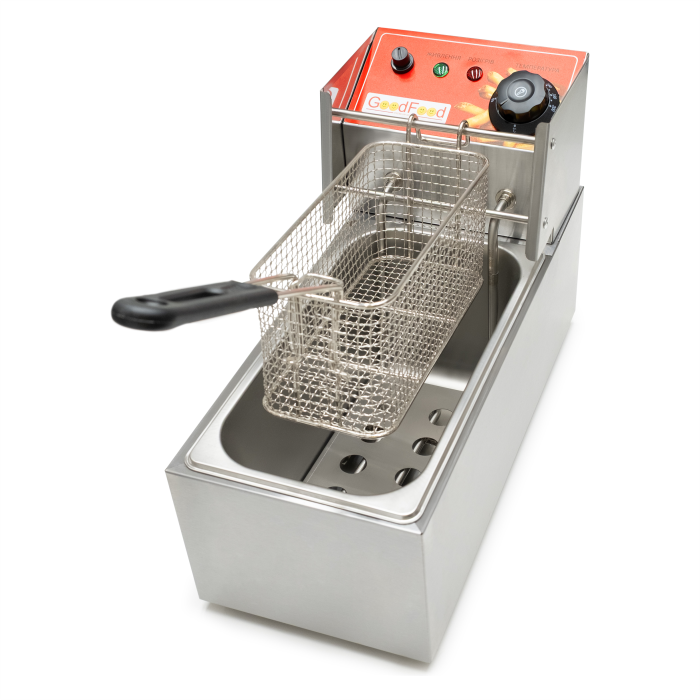 Профессиональная фритюрница - кухонное оборудование, которое позволит обжарить разнообразные кулинарные изделия путем погружения в большой объем горячего топленого масла (фритюр). В результате приготовления блюдо приобретает аппетитную хрустящую золотистую корочку, при этом сохраняя достаточно влаги и получая особый ароматный и вкус. Фритюрницу используют в кафе, барах, ресторанах и фаст-фудах для приготовления разнообразных блюд, таких как картофель фри, чипсы, овощи, грибы, куриные ножки и крылышки, рыбу (в кляре и без него). Время приготовления зависит от размера, плотности и температуры продукта