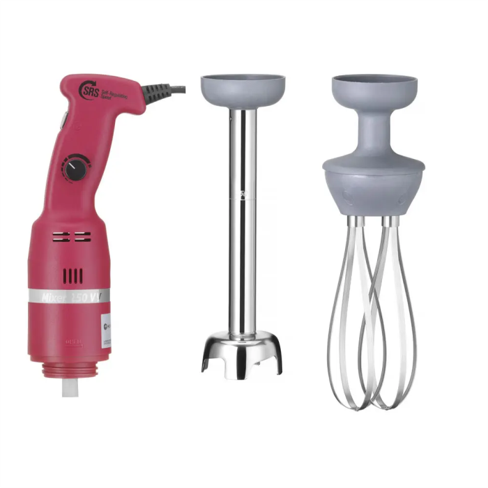 Міксер занурювальний ручний професійний подрібнює та перемішує, робить соуси та пасти, емульсії, фруктові та овочеві пюре (крім картопляного), джеми, муси, протерті супи, печінкові паштети, тісто для млинців