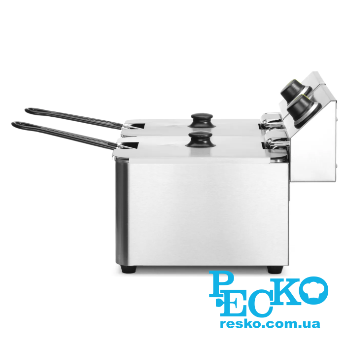 У професійній фритюрниці робоча ванна умовно поділена на гарячу та холодну зони. У гарячій зоні відбувається процес смаження, а в холодній, яка знаходиться між дном ванни та ТЕНом, відбувається осідання відшарованих шматочків продуктів. Шматочки осідають на дно ванни і не контактують з ТЕНом, самим гарячим елементом фритюрниці - це запобігає їхньому швидкому обвугленю (перегоранню), що призводить до гіркого смаку, потемнінню олії, утворенню канцерогенів, тим самим холодна зона забезпечить більш тривалу придатність олії для смаженняКорпус виконаний з нержавіючої сталі, що характеризується високою стійкістю до кислот, вологості і відповідно стійкістю проти корозії, що позитивно впливає на термін експлуатації фритюрниці