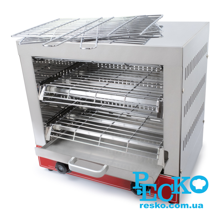 Професійний електричний горизонтальний тостер призначений для підсмажування та швидкого приготування класичних тостів, сендвічей, розігріву хлібців, булочок, круасанів чи піцци